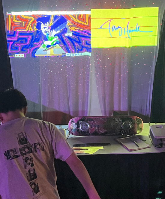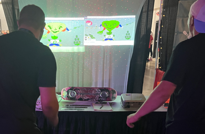 Thanks to Brandon for sending photos of Scrapeboard at the TooManyGames indie arcade!